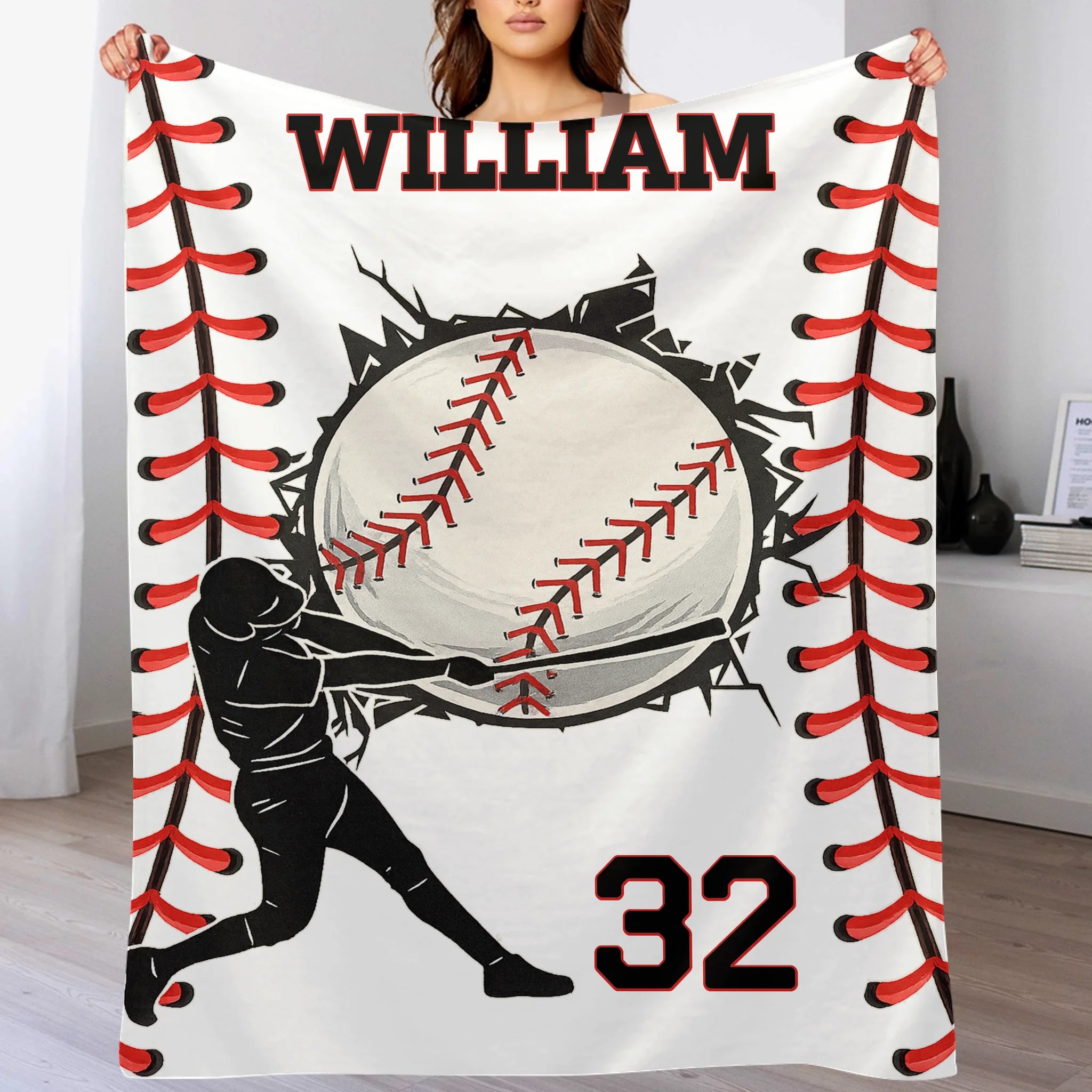 Available Product: Customized Baseball Design Soft Blanket - Personalized Color And Name - Gifts for Athlete, Baseball Enthusiast