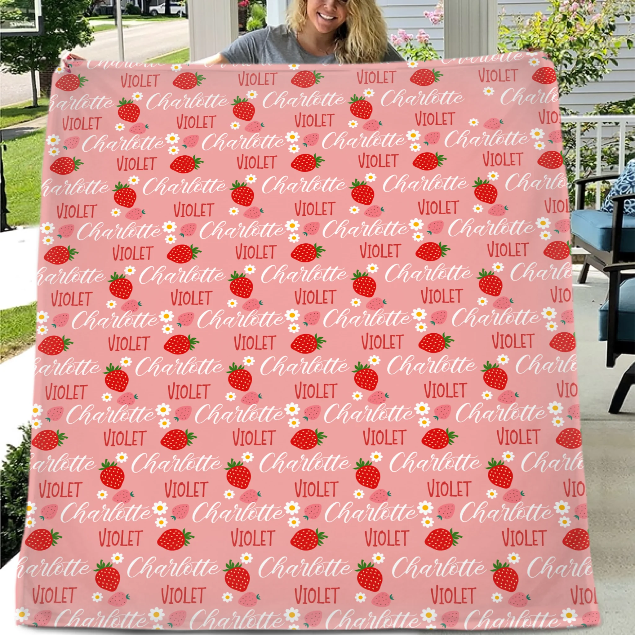 🍓Customized Strawberry Blanket - Personalized Name Toddler Blanket - Gift for Baby Girl, Kids