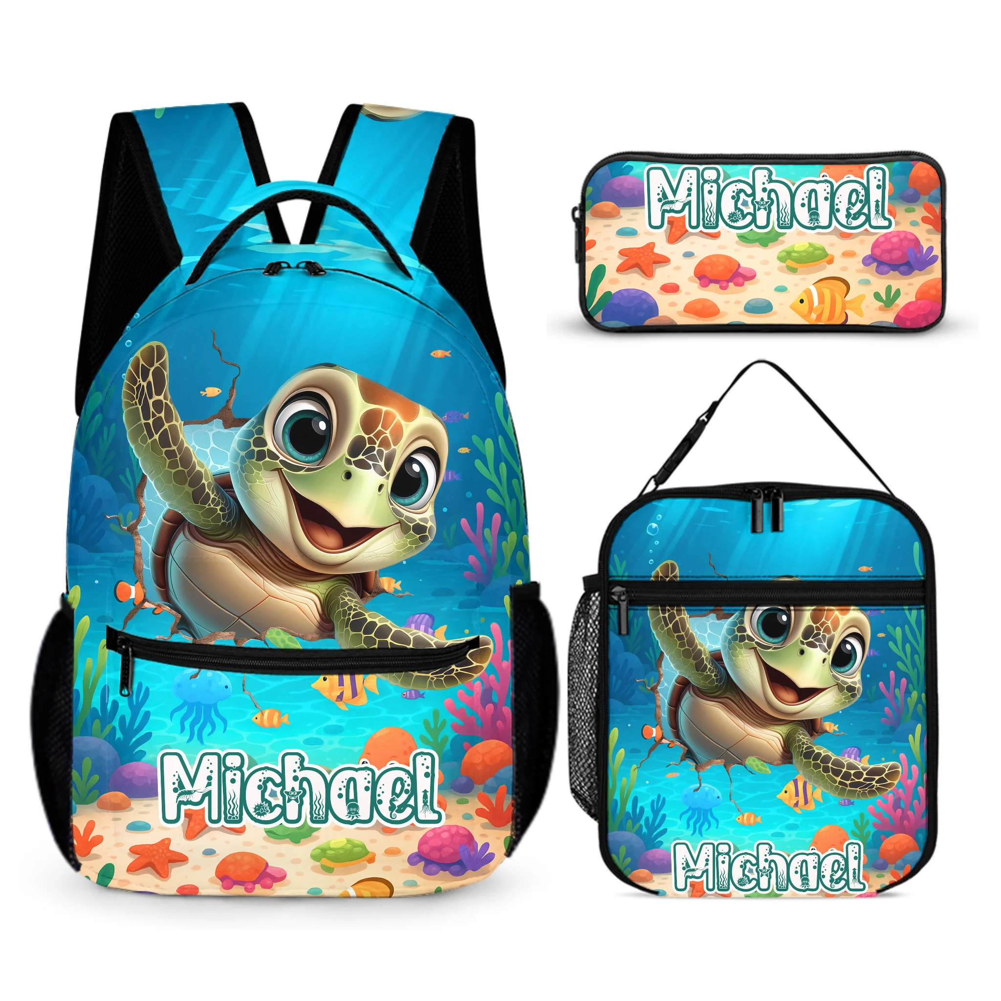Personalized Name Customized Ocean Turtle Backpack - School Season Gift for Kids
